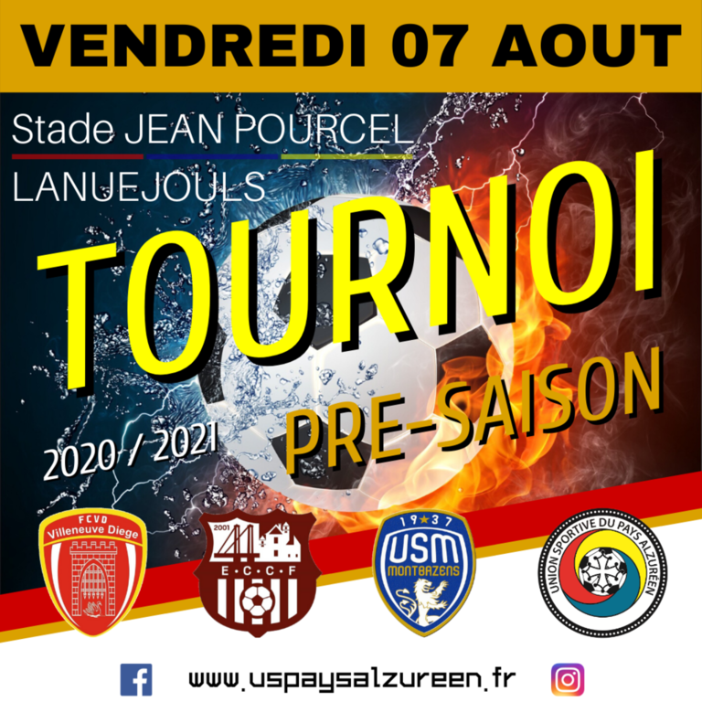 Vendredi 07 AOUT, l'USPA organise sont traditionnel tournoi de pré-saison en invitant les clubs de l' ENTENTE CAJARC CENEVIERES FOOTBALL, FC VILLENEUVE DIEGE et l' US MONTBAZENS. Tous les matchs auront lieu au stade JEAN POURCEL à LANUEJOULS et dureront 35 minutes.