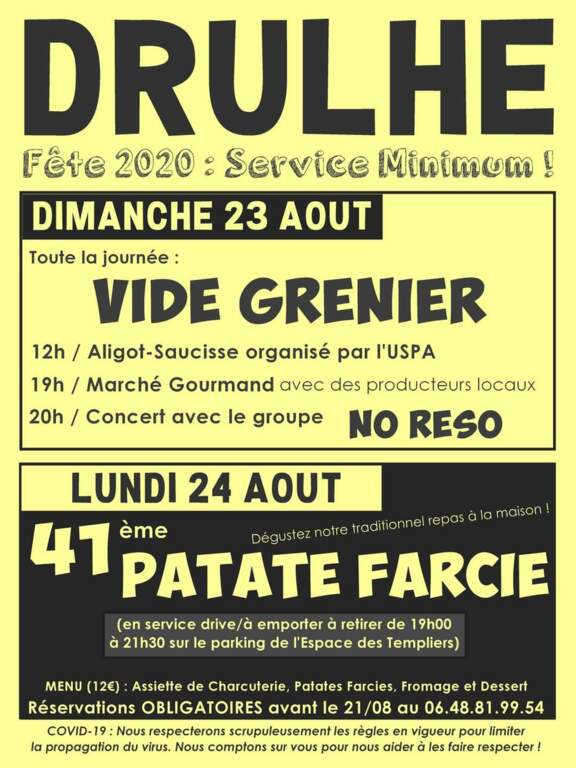 Le port de masque sera obligatoire pour vous présenter à la buvette, ainsi que pour récupérer votre plateau repas. Du gel hydroalcoolique vous sera mis à disposition et une organisation pour respecter les distanciations sera mise en place.