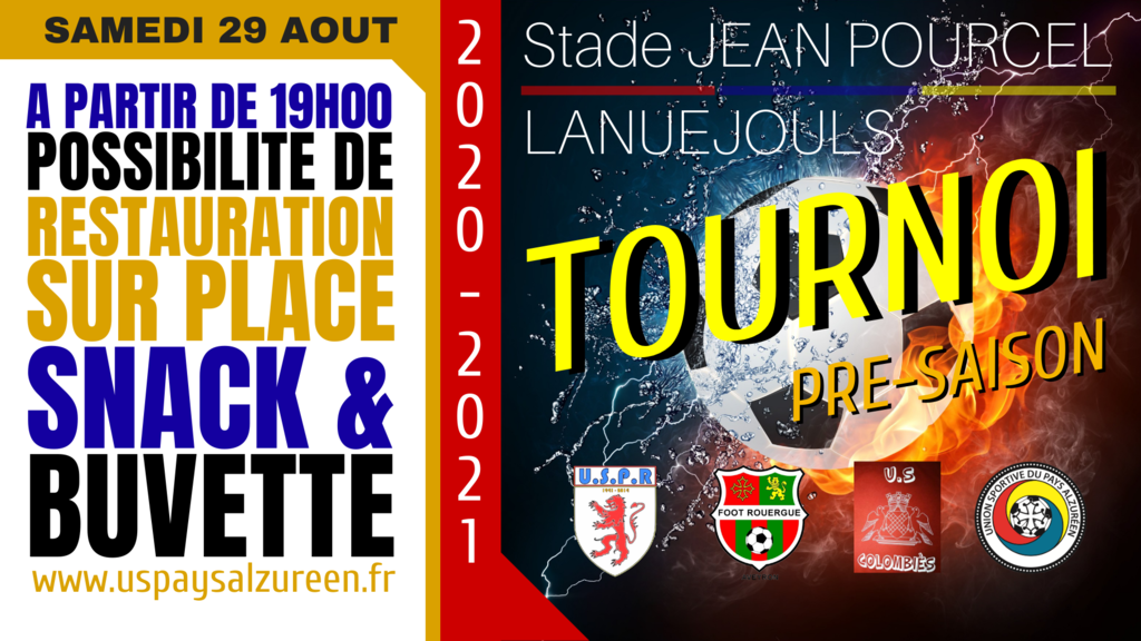 Samedi 29 AOUT, l'USPA organise sont deuxième tournoi de pré-saison en invitant les clubs de l' UNION SPORTIVE PAYS RIGNACOIS ll, l' UNION SPORTIVE DE COLOMBIES et FOOT ROUERGUE ll. Tous les matchs auront lieu au stade JEAN POURCEL à LANUEJOULS et dureront 30 minutes.