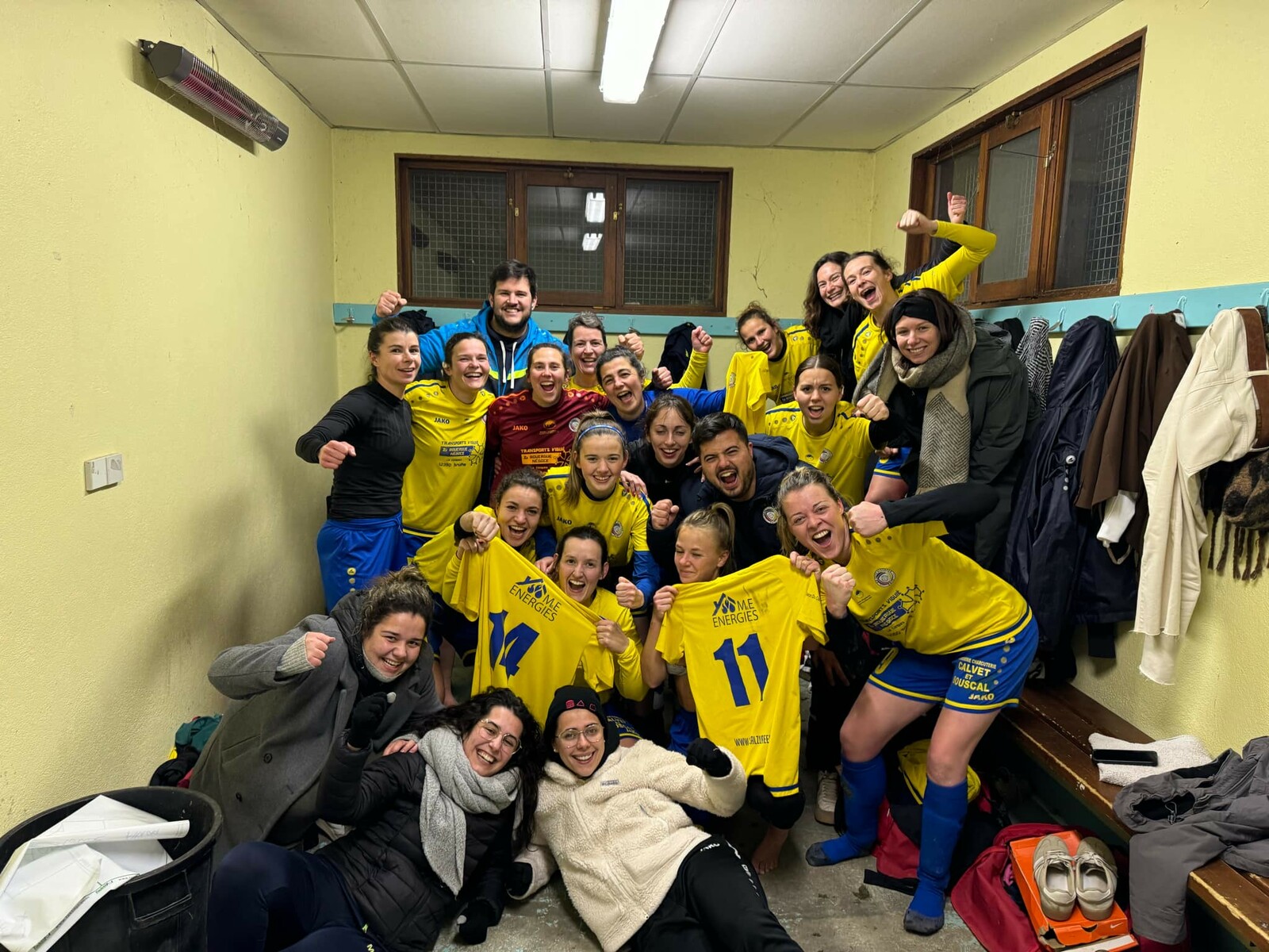 Pour commencer le week-end, nos féminines faisaient le court déplacement jusqu’à La Rouquette vendredi soir. Au programme, un derby devenu « classique » face à l’entente Foot Rouergue / Ouest Aveyron qui fait office de favori au vu de leur belle saison en D1, elles qui étaient aussi promues. Pour le terrain, les coachs avaient un plan en tête mais avaient surtout besoin que leurs joueuses passent en mode GUERRIÈRES pour relever ce défi et le message a été bien reçu. L’entame est superbe, avec une envie et une rigueur dans les duels qui fait vite déjouer les locales. Les Alzuréennes veulent jouer tous les coups à fond et ça paie très vite : à la 5ème minute, Virginie POURCEL, replacée devant, surprend la défense avec un ballon aérien que récupère Manon SCHIPPER en pleine vitesse. L’ex-rouergate crucifie la gardienne d’un petit ballon qui finit au fond des filets ! 0-1. Ce but d’avance donne beaucoup de force à toute l’équipe qui est décidée à ne rien laisser à leurs adversaires ce soir. Sur chaque ballon jusqu’à la mi-temps, il y a toujours une jaune qui vient passer devant. Les occasions se font rare des deux côtés. L’USPA est devant à la pause et chacune sait qu’aucun relâchement ne sera possible. Au retour des vestiaires, Foot Rouergue tente d’accélérer mais nos joueuses restent appliquées et solidaires, alors elles ne peuvent mettre en place leur jeu. Les premières relances sont toujours interceptées, les décalages sont anticipés et certaines joueuses sont omniprésentes sur le terrain. À l’image de Loanne GAYRAL, au volume de jeu impressionnant au milieu ou de Justine GARIBAL, dont on ne compte plus les coups de casque, les filles sont déterminées et nos adversaires s’y cassent les dents. En plus de ça, les incursions offensives sont bien négociées car les attaquantes gagnent toujours quelque chose grâce à un super pressing. Sur une touche près de la surface adverse, Loanne trouve Cindy VENDEIRO dans les pieds à quelques mètres du but : dans un angle quasi impossible, Cindy se retourne et envoie une demi volée qui lobe la gardienne et finit au fond ! Un but magnifique pour faire le break, le scénario est parfait… il reste encore 20 minutes à jouer et il va falloir faire bloc pour résister aux assauts de Foot Rouergue qui se réorganise pour faire basculer la rencontre. À 15 minutes de la fin, la numéro 5 locale réduit le score sur un beau coup franc très bien tiré. Tous les ingrédients sont là pour une fin de match irrespirable et ce sera le cas, jusqu’au bout du bout. Mais ce vendredi, les Poulettes ne flanchent pas. Une grosse délivrance, un soulagement pour toute l’équipe puisque c’est la première victoire de la saison en championnat, qui plus est dans le derby, la première en D1 alors on s’en souviendra autant que cette saison difficile. Et la symbolique est belle, puisque c’est sur le terrain qui a vu le premier match officiel de nos Poulettes à la création de l’équipe 4 ans auparavant. Nos 2 buteuses du soir étaient d’ailleurs de l’autre côté à ce moment là. L’histoire est belle et même s’il elle ne change pas grand chose au classement, on joue tous et toutes pour ces moments là. Il reste maintenant 4 matchs de championnat pour continuer de montrer ce visage et s’accrocher, jusqu’au bout du bout !