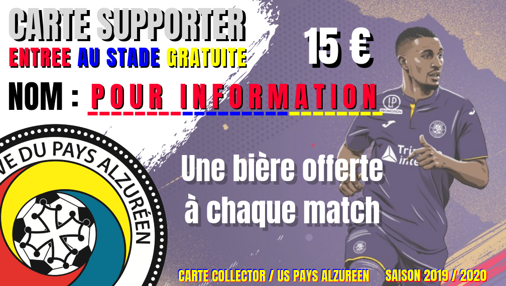 Pour cette nouvelle saison, l'USPA vous repropose la CARTE SUPPORTER. Elle vous permets de rentrer au stade gratuitement pour encourager votre équipe favorite, que cela soit en coupe ou en championnat !